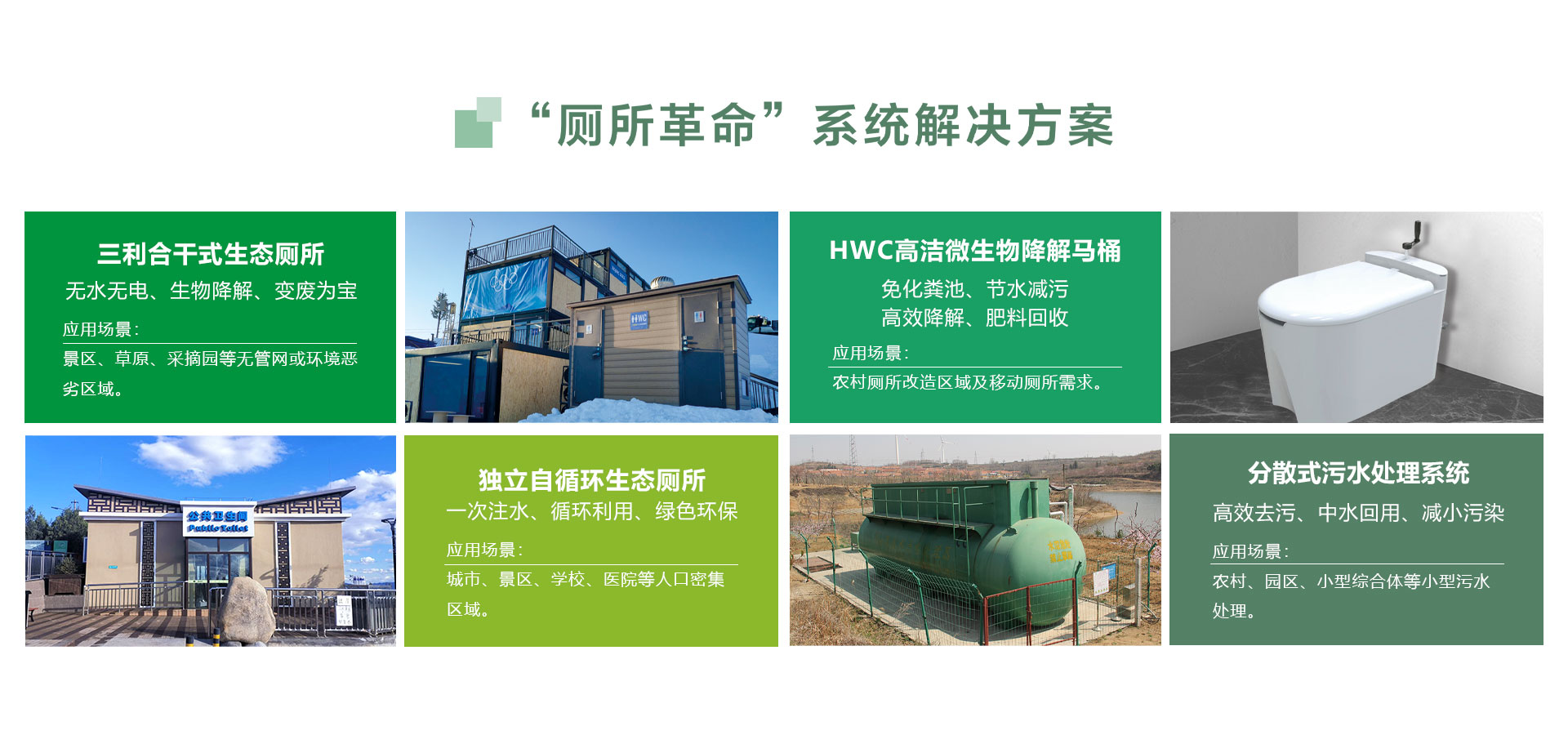 ?我們專注于“源頭”上的廁所革命,系統(tǒng)解決景區(qū)(點)、城市和農(nóng)村三大領域的實際需求,是真正意義上的生態(tài)環(huán)保廁所。